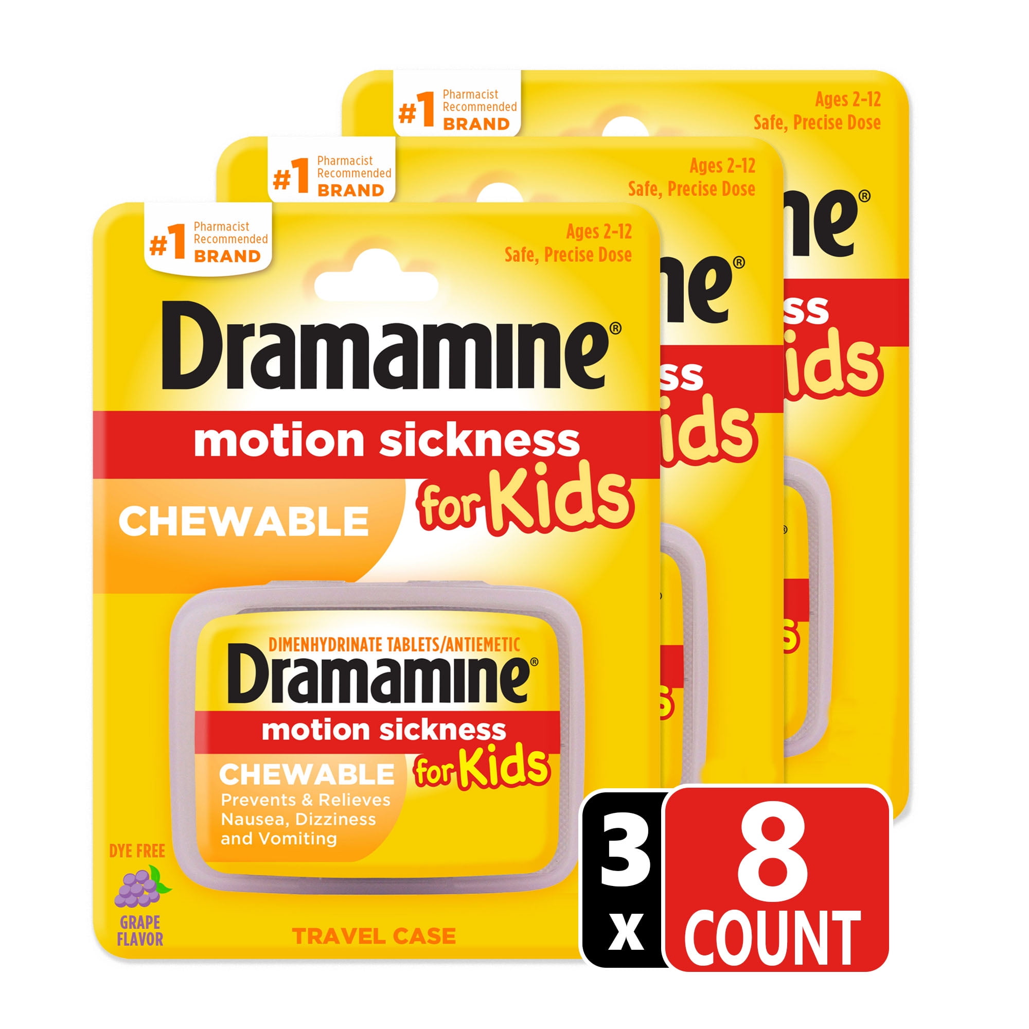 Dramamine Motion Sickness For Kids Chewable Grape Dye Free 8 Count 3 Pack Walmart Com